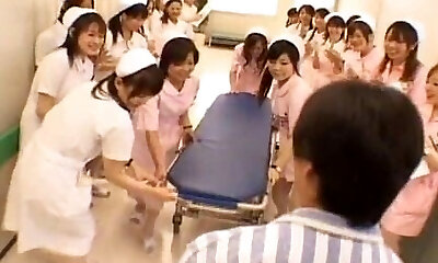 Quickie fucking on the hospital couch with a dressed Japanese nurse