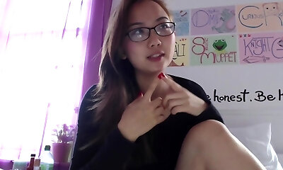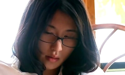 Cute huge-chested asian girlfriend fngers in glasses