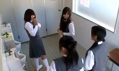 Japanese Asian Schoolgirls In Sexy Uniform Pissing On Male Student In Femdom Action
