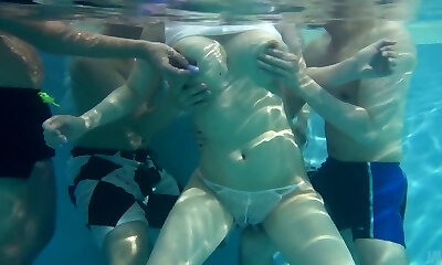 Tiffany gives us an underwater undress session exposing her shaved cunny