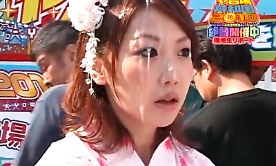 Numerous Creampies in Gangbang for Body Painted Japanese Teen