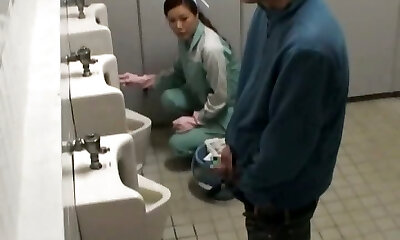 Asian chick is cleaning the wrong public